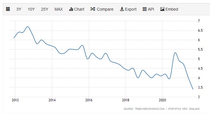 NZ unemployment rate last 10-years. This is the most candidate-short market in NZ history, or at least as far as modern job market history is concerned. A perfect storm for a hiring frenzy when the borders open.