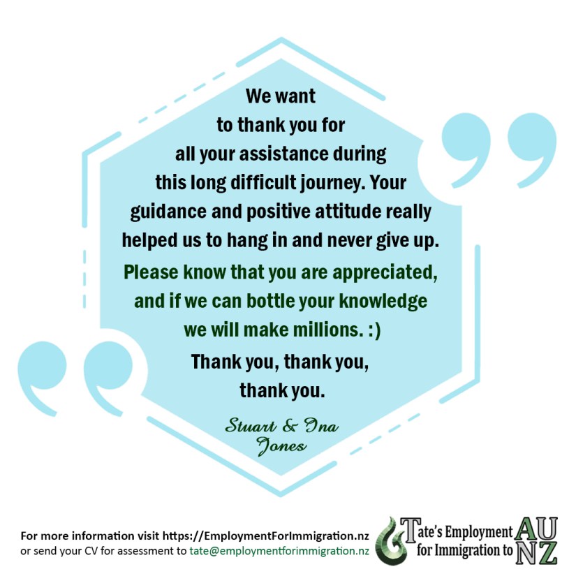 It was great to work with Stuart and Ina. It wasn’t easy to enter New Zealand when they did. You remember all the disruptions of that time when New Zealand was considered “the most locked-down country”. But they never gave up and I knew they would succeed because Stuart has 30+ years of specialised experience servicing equipment on the sites of so many big name corporations. His work diversity and projects are amazing. His employer in New Zealand has found a quality candidate that doesn’t hardly exist in New Zealand because guys like Stuart don’t move jobs often. Their bosses keep guys like him happy because they must. We are a candidate short market. I appreciate testimonials like this. Thank you Stuart and Ina, it was a pleasure to work with you.