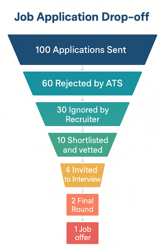 Reality: Recruiters spend just 6–8 seconds on resumes —and ATS filters often eliminate up to 70% of applications.